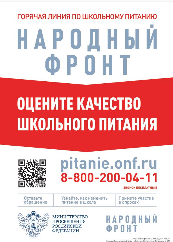 Недовольны качеством школьного питания?- плакат Народного Фронта